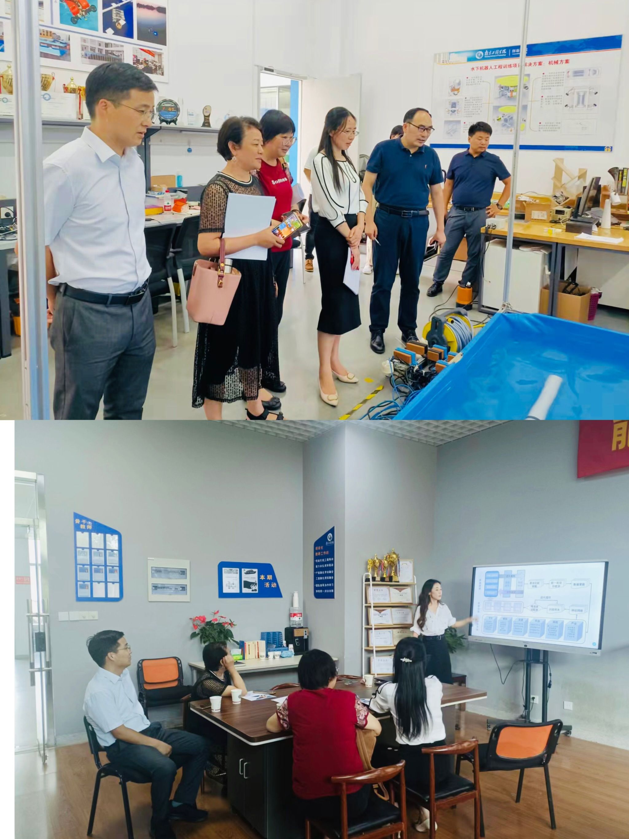 专家组一行还对教务处、学院负责人和教研室教师代表分别进行座谈交流;实地考察了虚拟教研室教研活动室、教学实验室、工程化项目教学坊、创新创业学院等活动场所和教学设施;现场观摩了虚拟教研室骨干教师的说课和课堂教案,查阅了虚拟教研室活动记录、教学案例、教研活动等教研教学资料,与部分教师、学生、管理人员等进行了个别访谈。