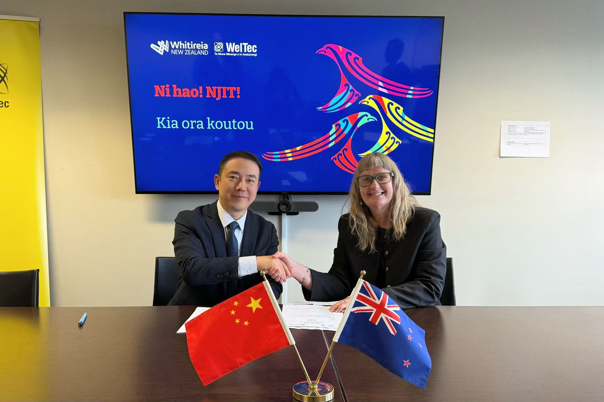 8月11日,代表团访问国立新西兰理工所属维特利亚理工学院和惠灵顿理工学院,受到校长玛丽-克莱尔·普罗克特一行的热情接待。普罗克特与该校数字媒体与设计专业负责人布兰达?萨里斯介绍了对华合作、人才培养成果及国际化特色项目。孙爱武赞赏两校作为新西兰技术教育领军者在应用型人才培养方面的成就,与校方就学生联合培养、长短期交流等合作达成共识,并签署校级合作框架协议。