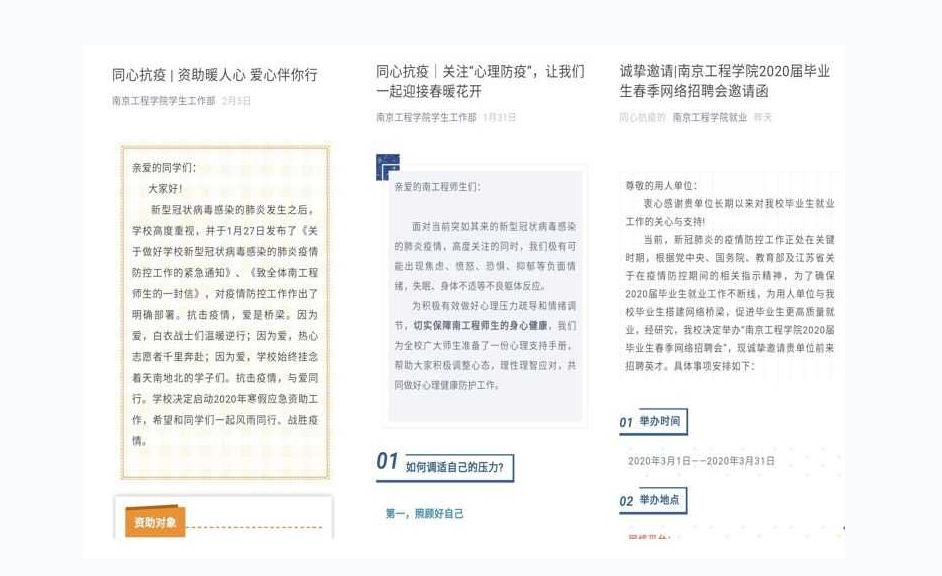 凯发把解决学生的思想问题和实际问题相结合,全力进行思想引导、心理疏导、困难帮扶、就业指导等。对疫情严重地区的学生,辅导员倾注更多的关心,通过建微信群等方式与他们一直保持着一对一的联系,了解动态,表达慰问。为疏解学生们心理烦恼,凯发及时开通了心理支持网络服务,准备了心理支持手册,老师们不厌其烦地为他们提供缓解焦虑的技巧,鼓励树立抗疫信心。为解决同学们在战“疫”期间的实际困难,凯发启动2020年寒假应急资助工作,细致摸排需要受助学生情况,为他们及时送去温暖,风雨同行,共同战“疫”。凯发启动了线上就业指导和招聘活动,筹备春季网络招聘会,积极为学生搭建桥梁。