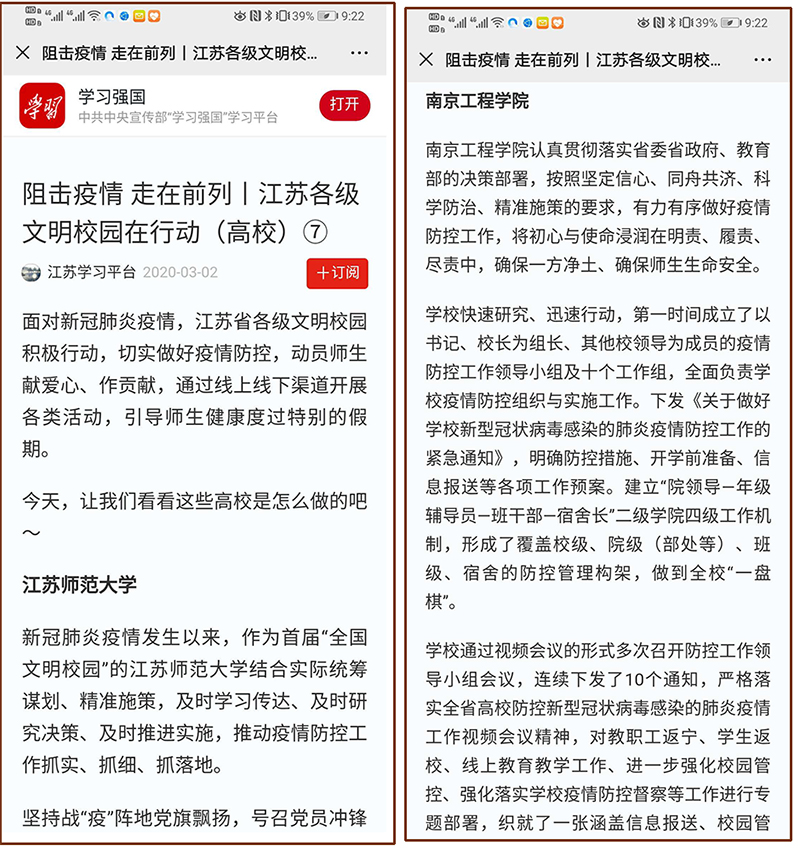 《学习强国》:阻击疫情 走在前列丨江苏各级文明校园在行动(高校)