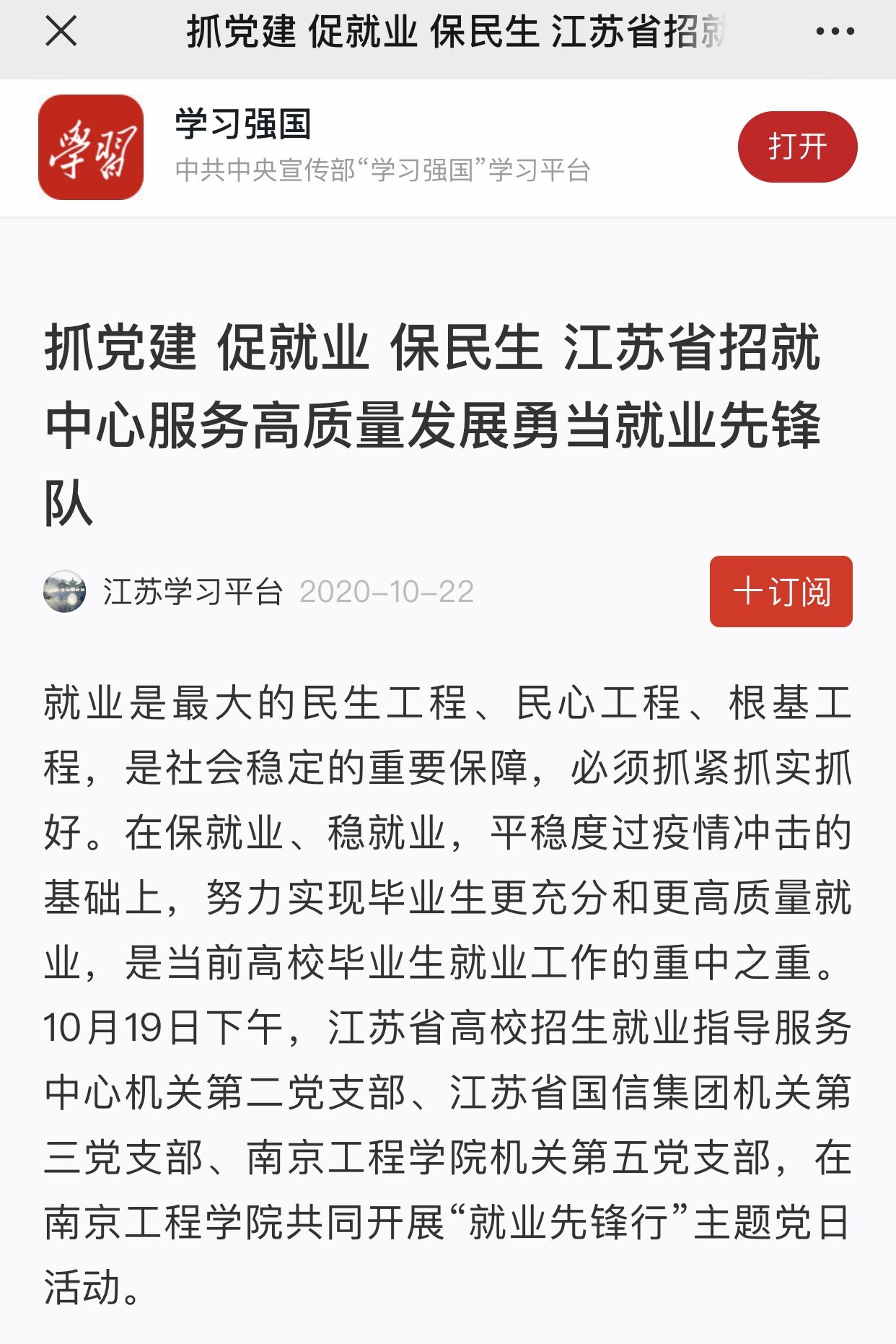 就业是最大的民生工程、民心工程、根基工程,是社会稳定的重要保障,必须抓紧抓实抓好。在保就业、稳就业,平稳度过疫情冲击的基础上,努力实现毕业生更充分和更高质量就业,是当前高校毕业生就业工作的重中之重。10月19日下午,江苏省高校招生就业指导服务中心机关第二党支部、江苏省国信集团机关第三党支部、凯发k8官网机关第五党支部,在凯发k8官网共同开展“就业先锋行”主题党日活动。