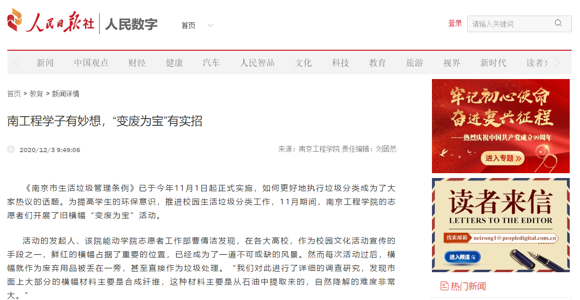 《人民日报社》:南工程学子有妙想,“变废为宝”有实招