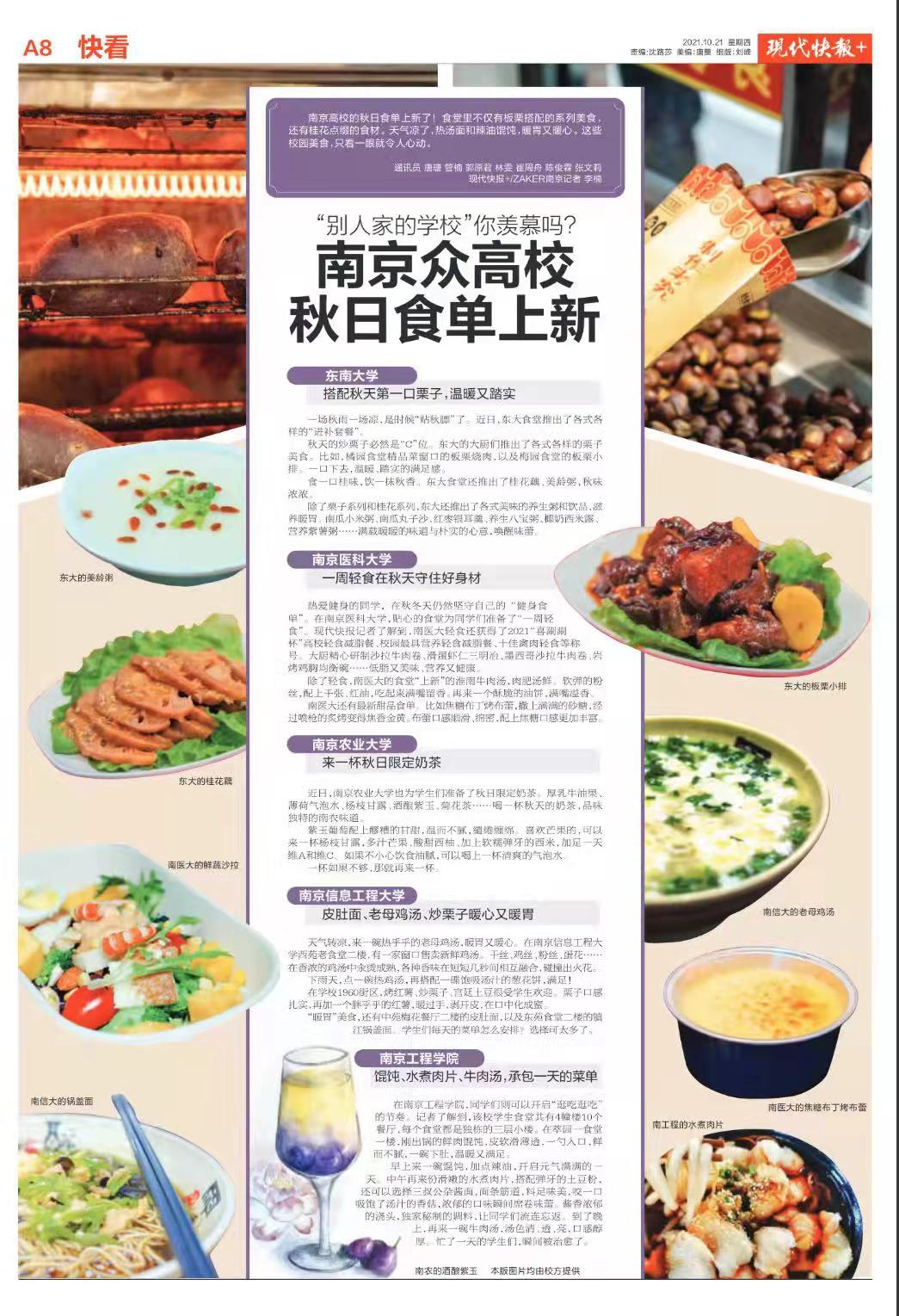 当然,近期南京也 " 自带 " 香气,扑面而来的桂花香深得市民的喜爱,食一口桂味,饮一抹秋香。东大食堂还推出了桂花藕、美龄粥,秋味浓浓。