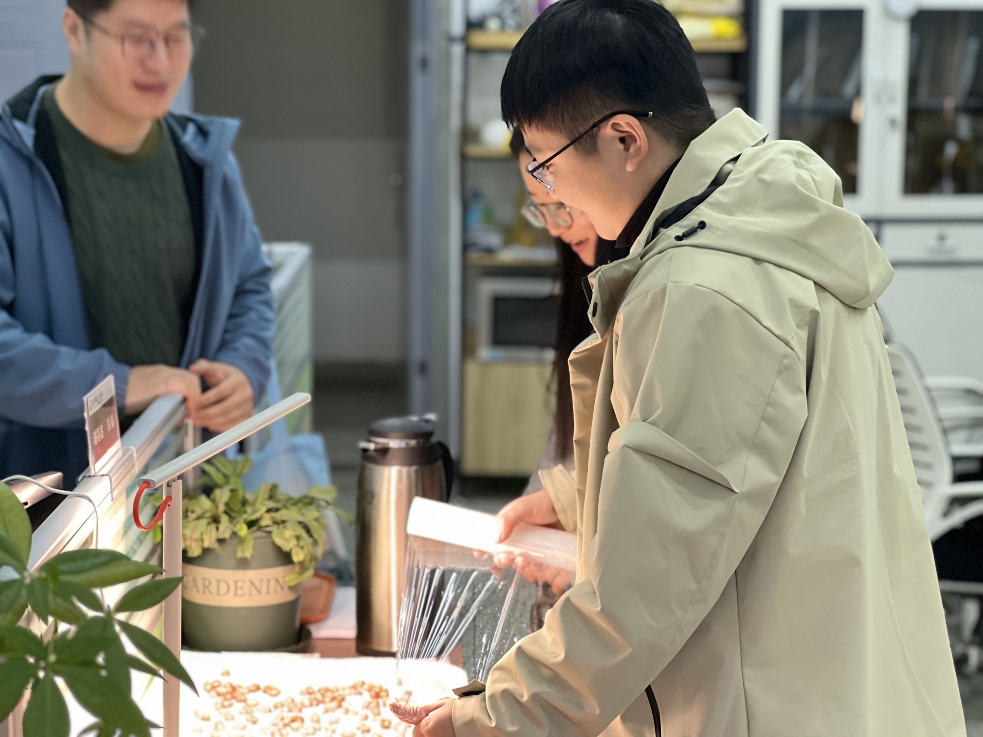 “为考研学生送祝福已连续开展多年,是学院的一项传统活动,也是考研学子共同的珍贵回忆。我们一直在思考,什么样的心意既有思想深度又有人文温度呢?”毕业班辅导员介绍,缘起学院的‘植茁’德育工作室,我们想通过亲手种植的植物告诉同学们,一定要向下扎根,坚信忙有所得,耕有所获。”这样的创意得到了同学们的积极响应,学院提前2个月开始筹备,选种、泡发、促芽、移盆、日常养护......每一株苗都是从种子孕育成长起来的,同学们能够清楚看到根系和植株的一步步发育,直到郁郁葱葱。