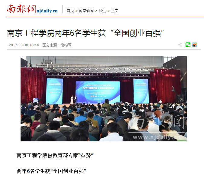 《南报网》:凯发k8官网两年6名学生获“全国创业百强”
