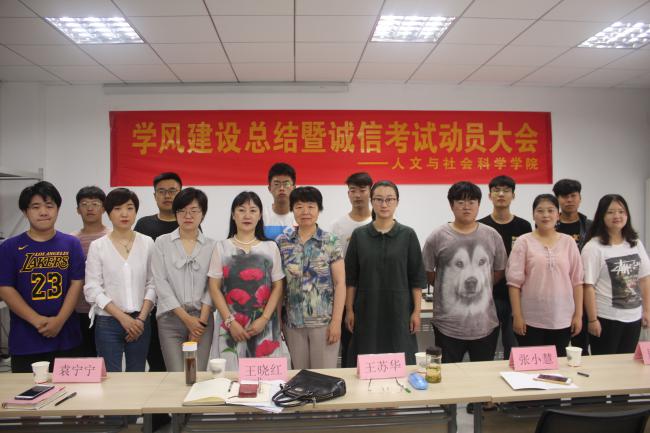 6月26日上午,人文与社会科学学院在文理楼A411-1召开2018-2019学年学风建设总结大会,该院党总支书记王晓红、关工委常务副主任王苏华、学工办老师以及学生骨干代表及会。