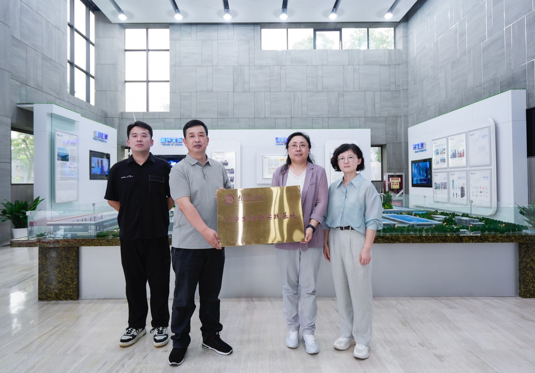 座谈后,校企双方共同观看了企业宣传片,参观了企业的生产车间,深入了解企业的生产流程和技术创新成果并共同揭牌“凯发k8官网大学生社会实践基地”。